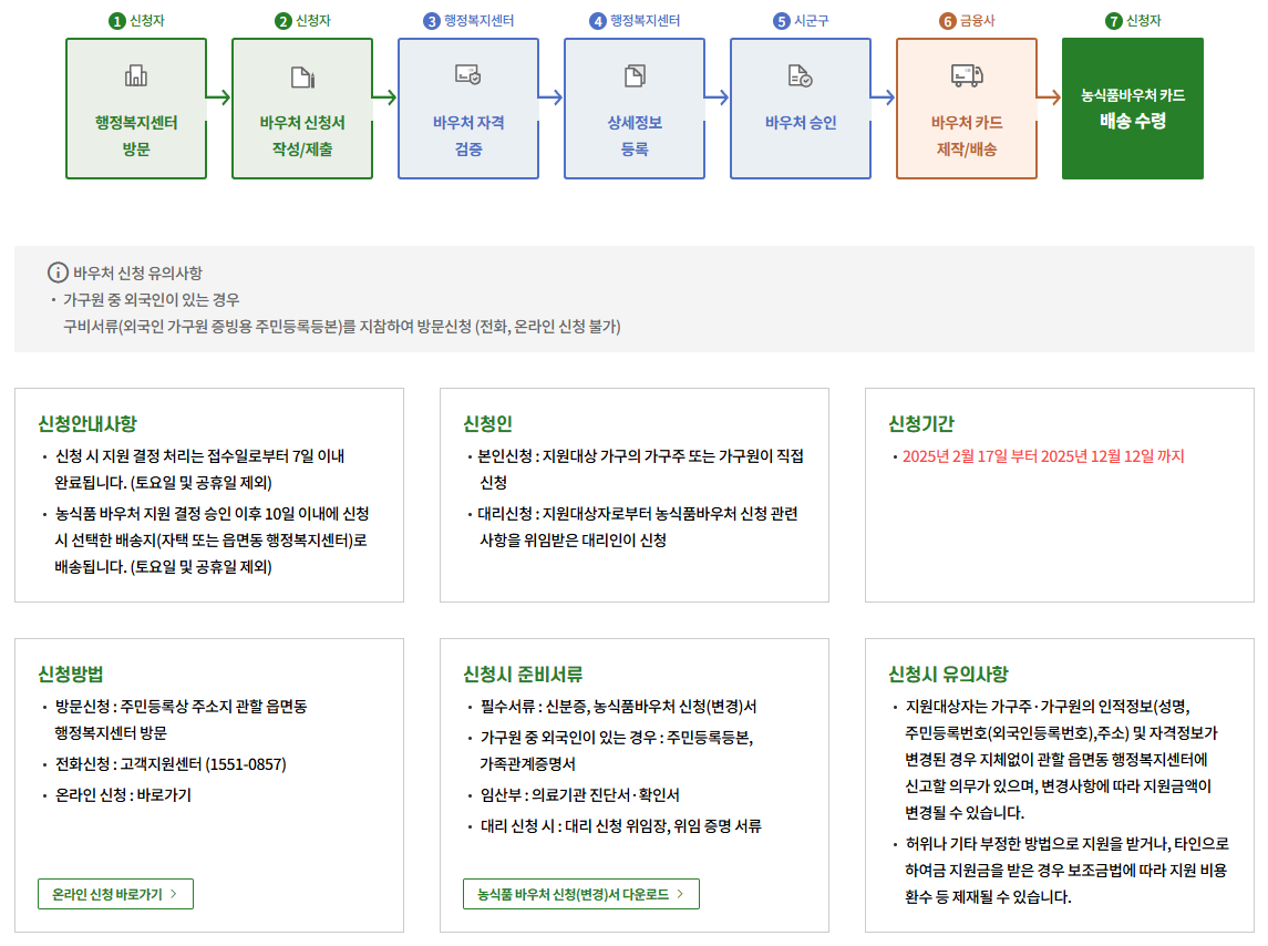 👉 농식품 바우처 홈페이지 및 거주지 주민센터에서 확인 가능합니다.