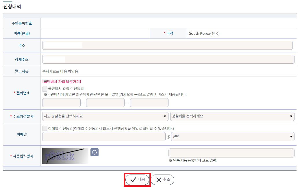 - 해외 제출용(아포스티유) 회보서는 경찰서 방문이 필요함