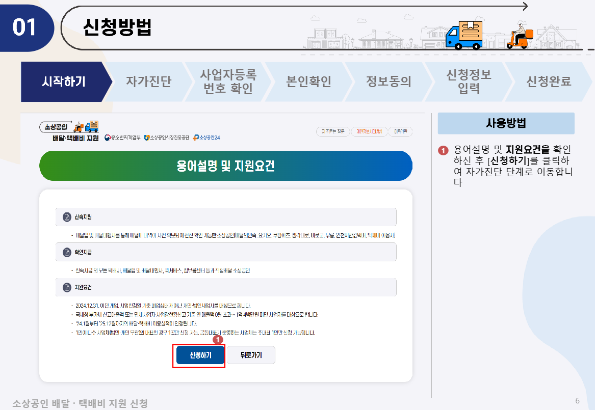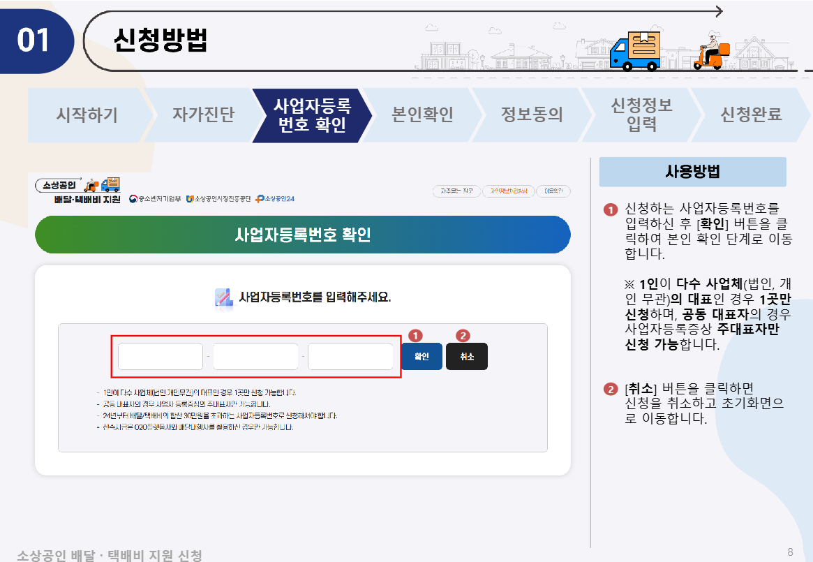 - 별도 증빙 없이 사업자등록번호 입력만으로 신청 가능