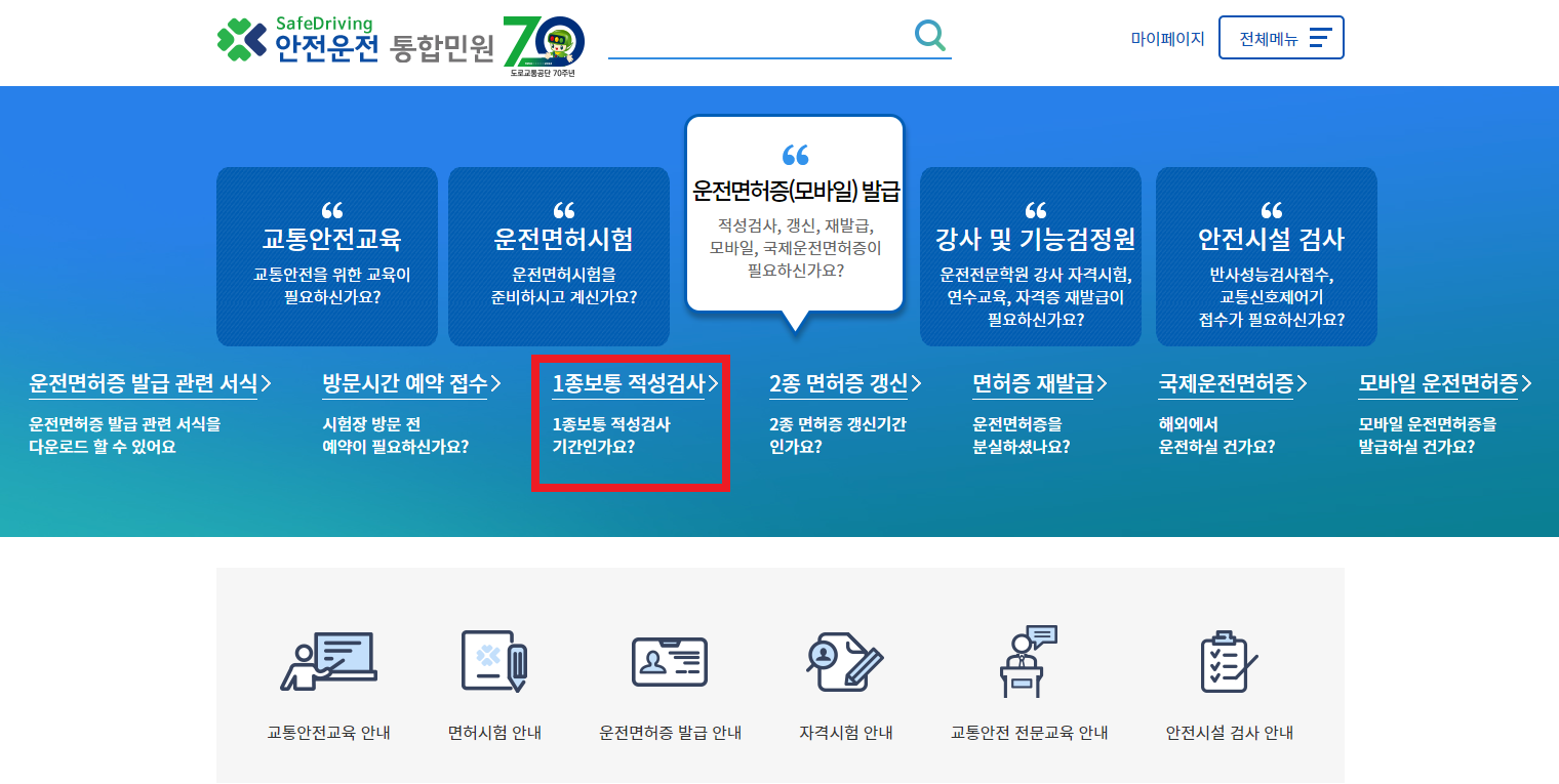 - 70세 이상 2종 면허 소지자 → 적성검사 필수