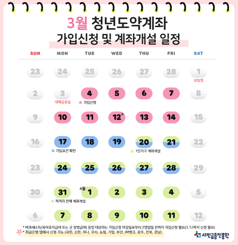 청년도약계좌는 매월 신청 기간이 변경되므로, 가입을 희망하는 청년들은 서민금융진흥원 또는 취급은행 앱을 통해 신청기간을 꼭 확인해야 합니다.