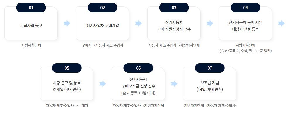 - 차량 등록이 완료되면 보조금이 차량 가격에서 차감되거나, 일부는 구매자 계좌로 지급됩니다.